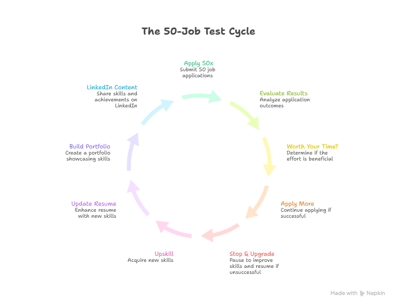 Once you've meaningfully upgraded your skills and materials, run The 50-Job Test again. Check your interview rate. Repeat the cycle until applications are actually worth your time.
