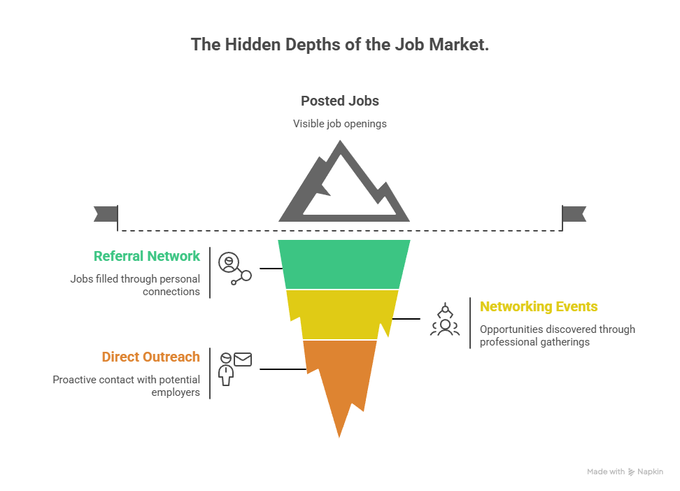 Here's another stat that should stop you in your tracks: 70-85% of jobs are never even posted publicly. They're filled through referrals and networking. And interviews that come from referrals are 35% more likely to result in job offers than those from online applications.